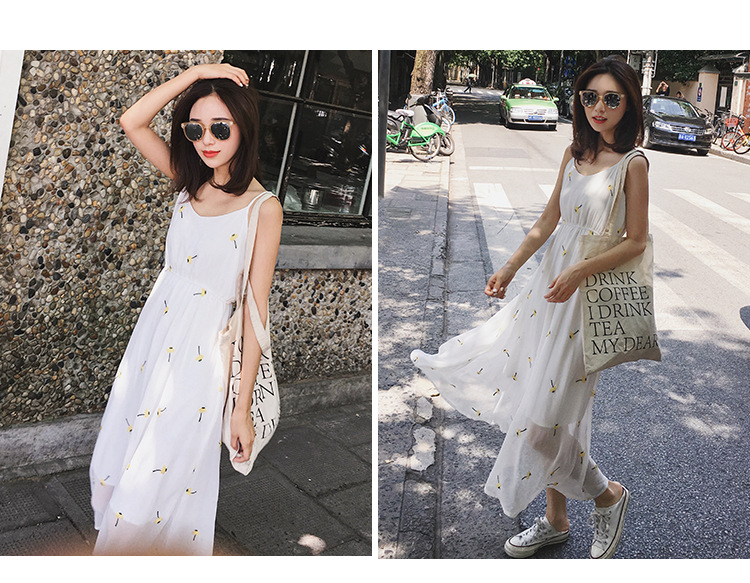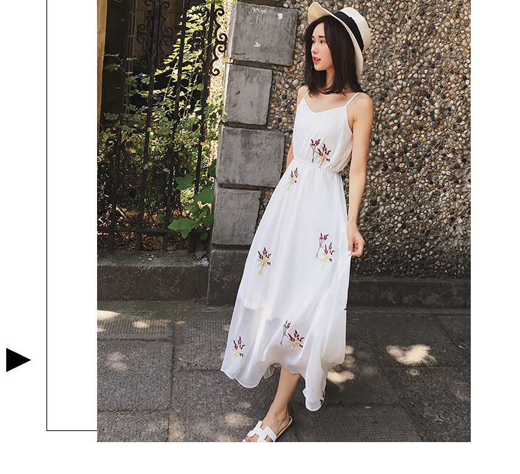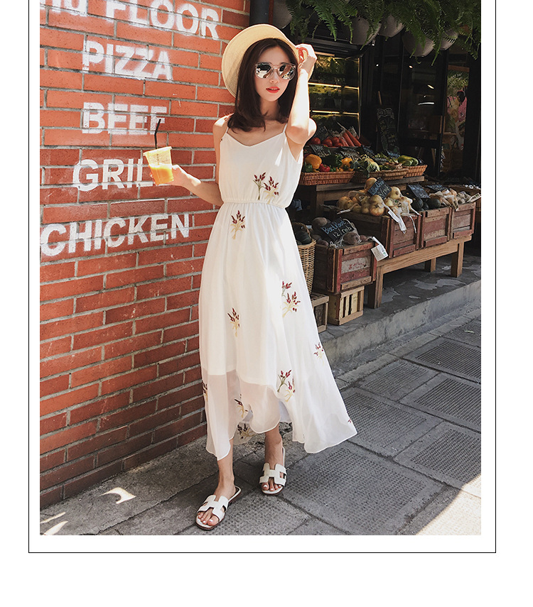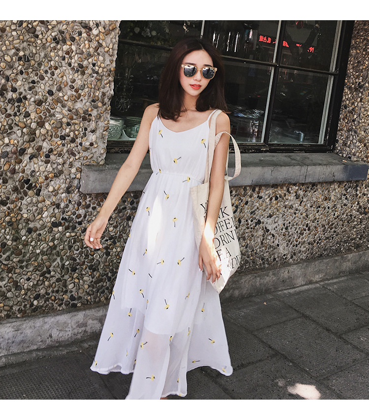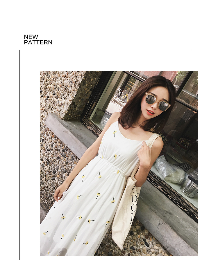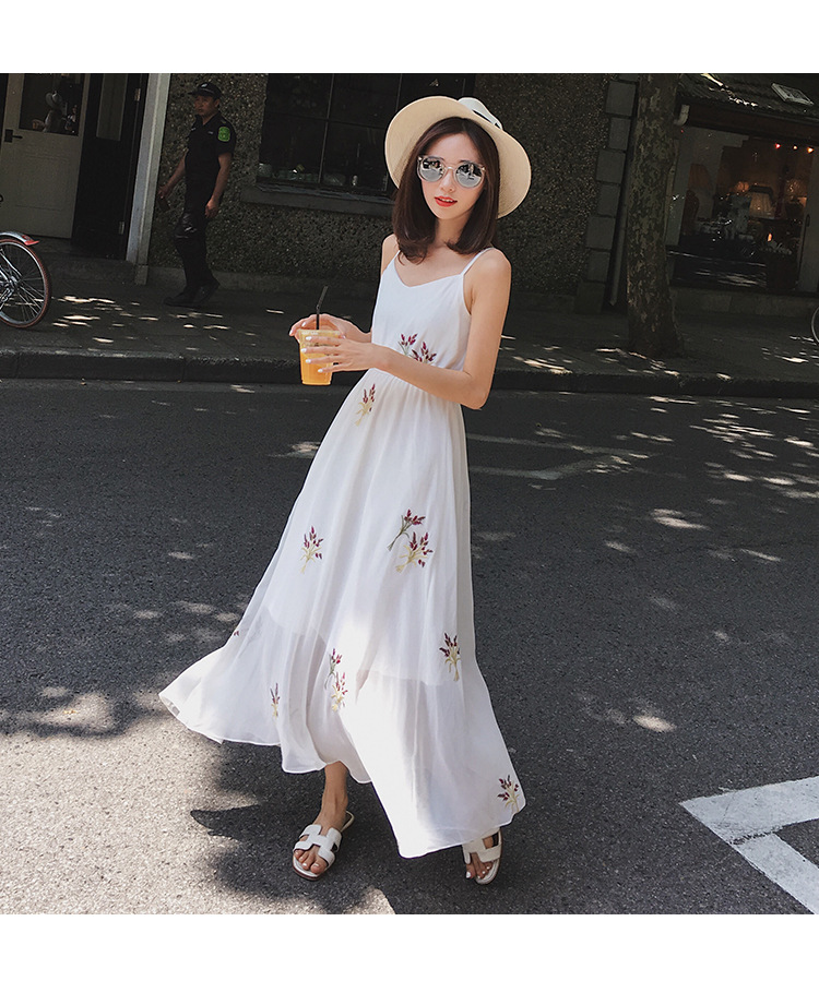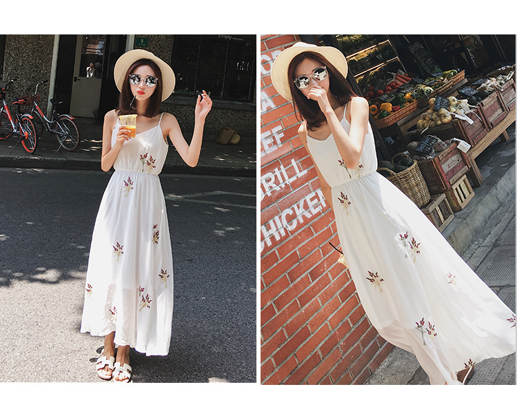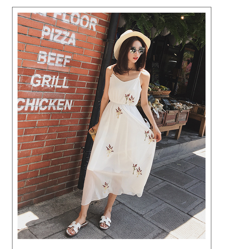 Summer new Korean women’s large size Slim heavy industry embroidery sling chiffon dress