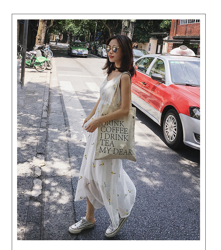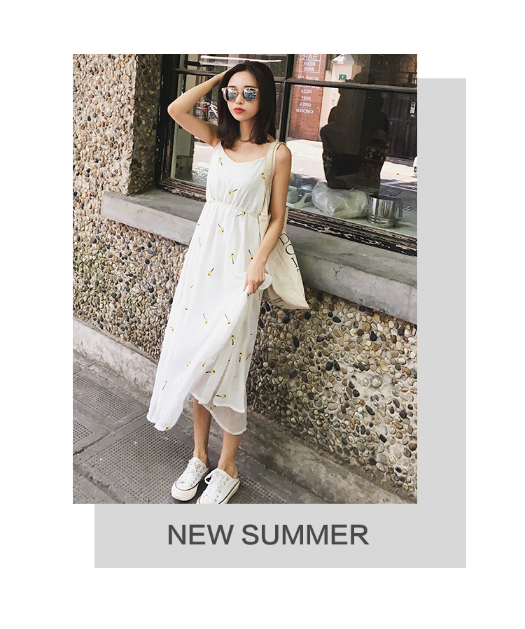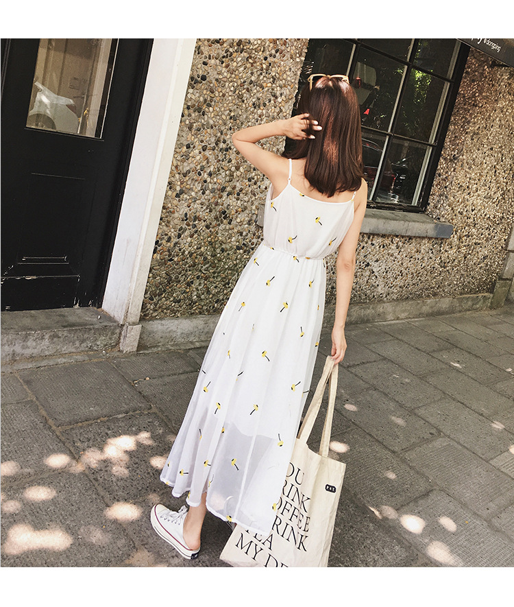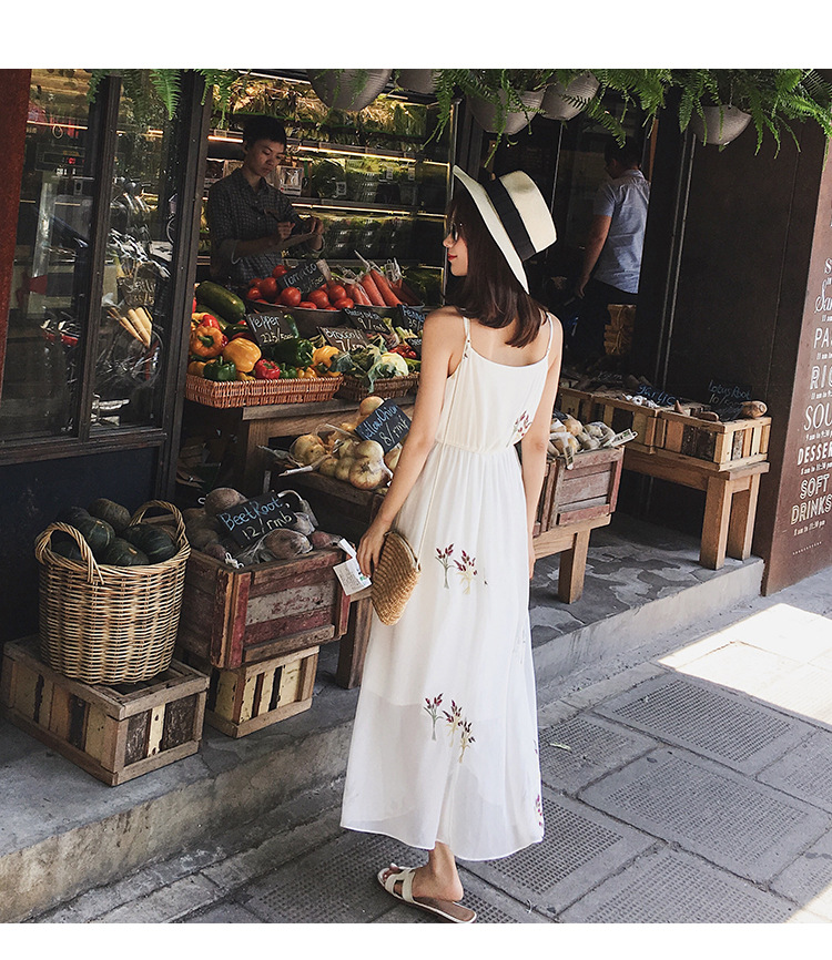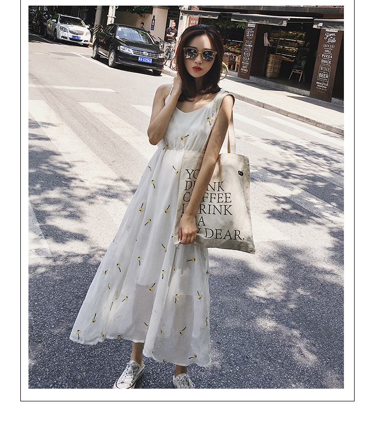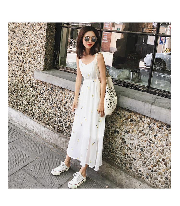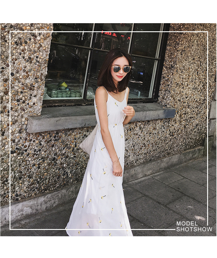 Summer new Korean women’s large size Slim heavy industry embroidery sling chiffon dress