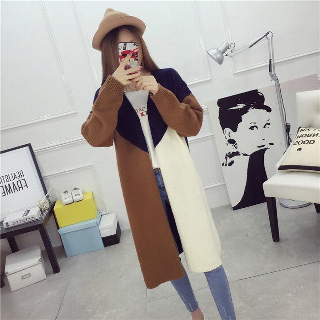 Autumn and winter women’s fashion Korean fight color long section thin loose sweater