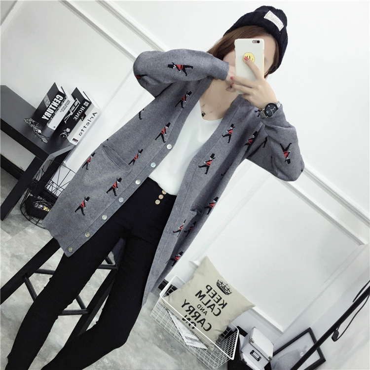 Autumn long knit cardigan autumn women’s new Korean version loose outside shirt thin sweater