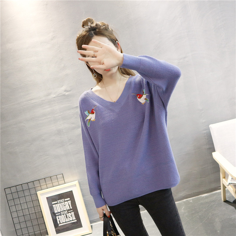 Autumn new knitted women embroidered sets of sweaters printed bird
