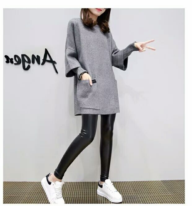Korean version fat women’s autumn and winter long paragraph fake two pieces woolen dress