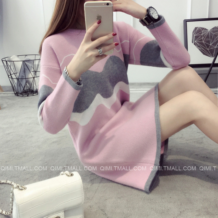 Autumn and winter new knitting Korean version of water wave stripes loose sweater