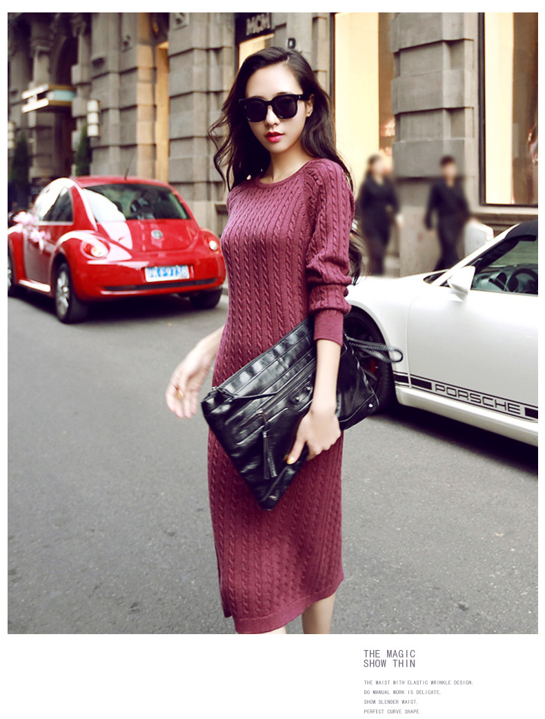 Autumn and winter new Korean version Slim long section knee hip knitted sweater