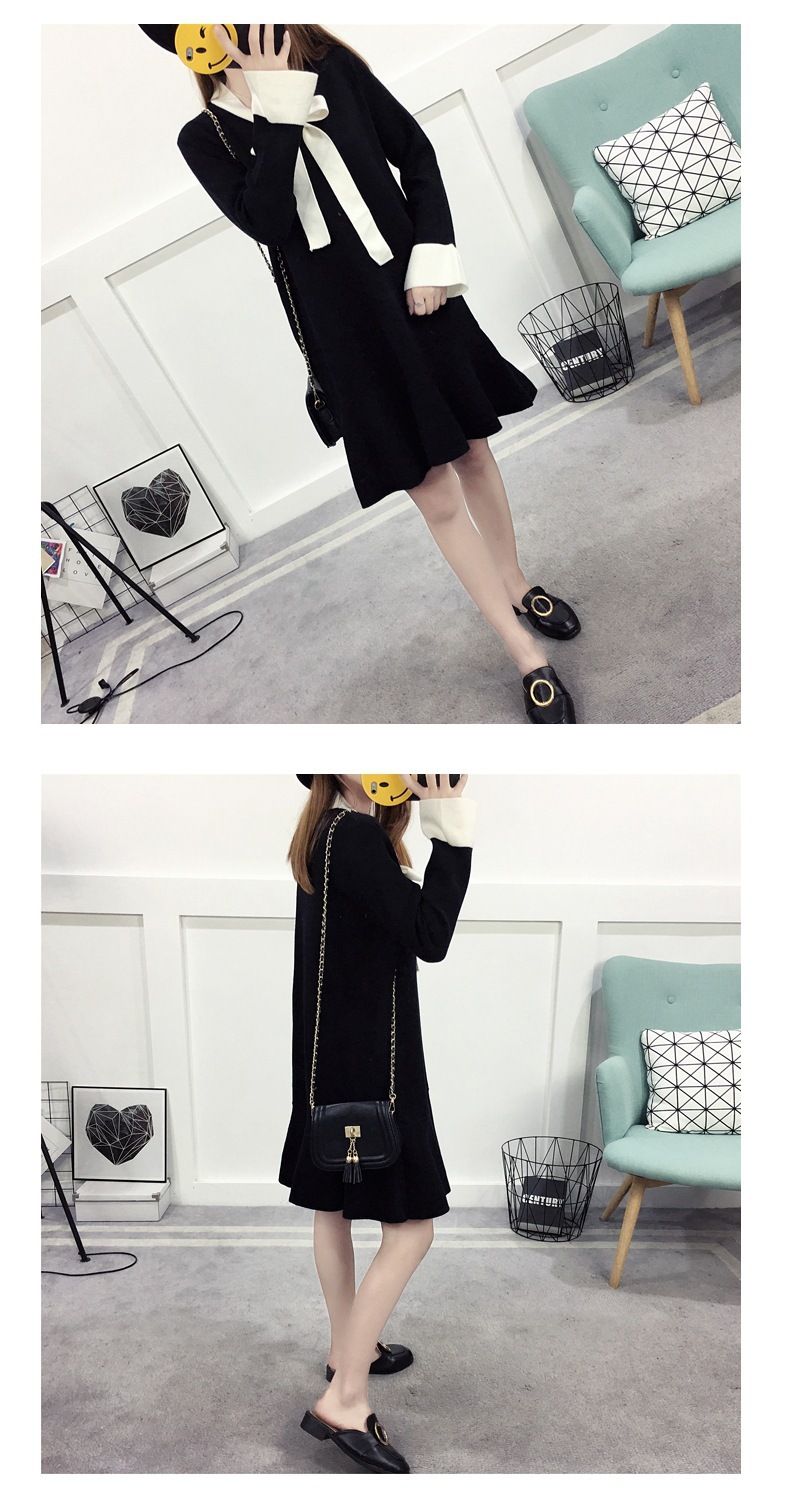 Autumn and winter new women’s college wind bow knitting women loose long paragraph fish tail sweater