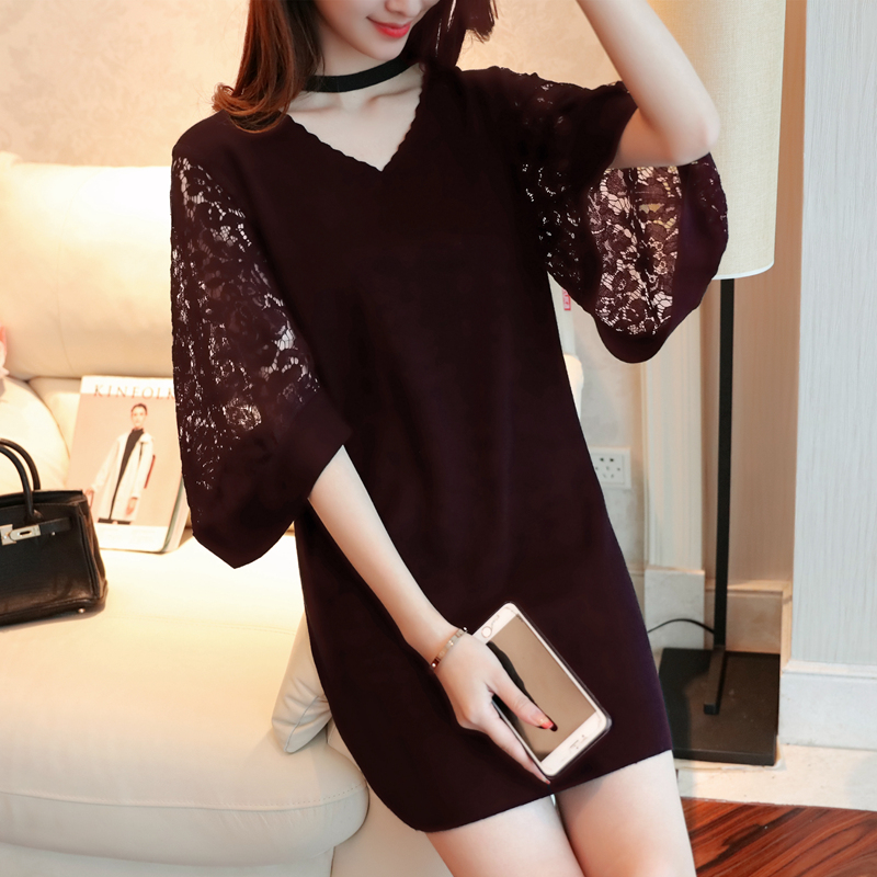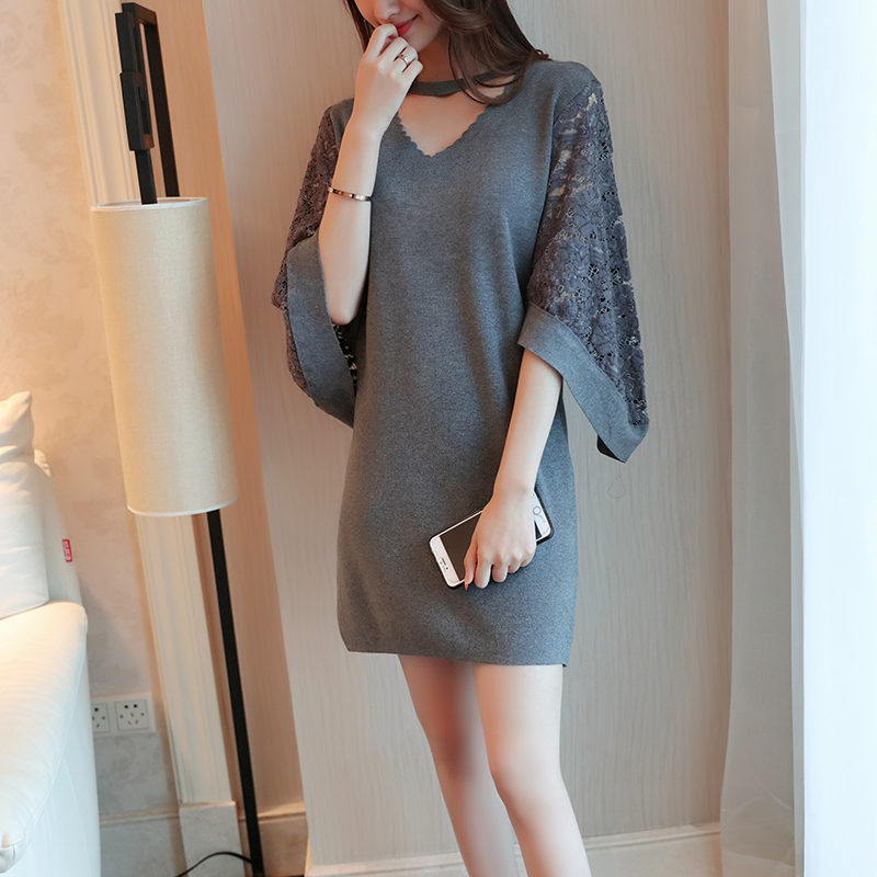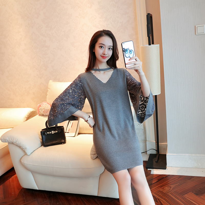 Korean version of autumn new loose long paragraph V collar sleeves women’s sweater