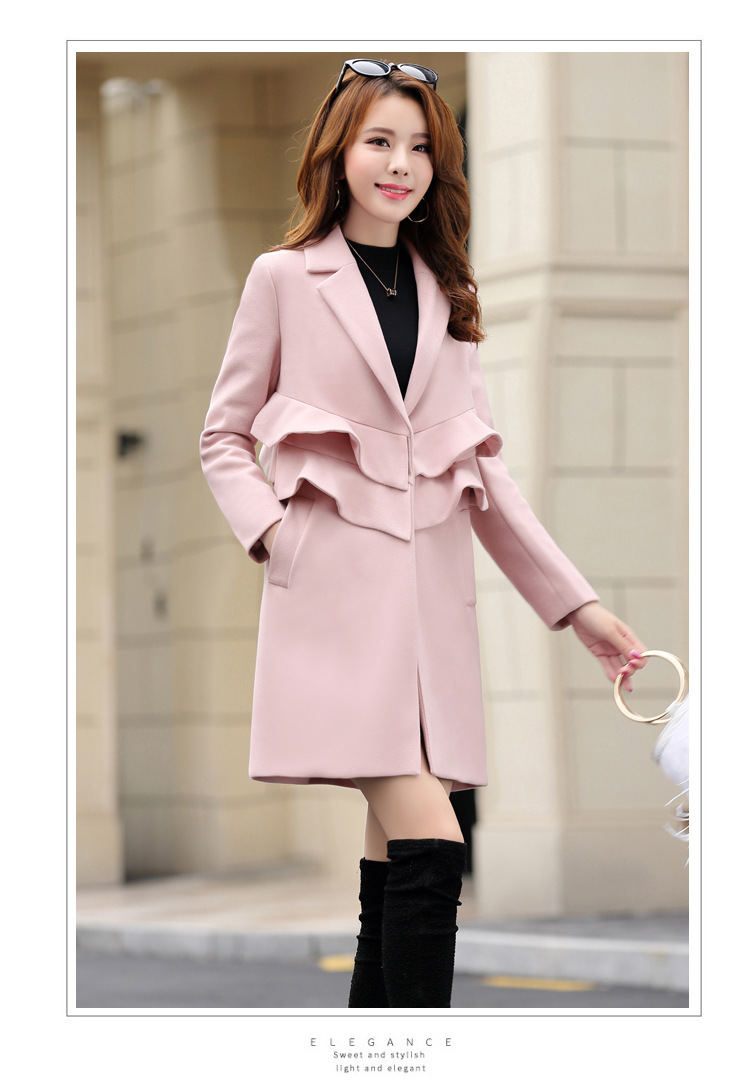 Autumn and winter new waist Korean Slim thin long sleeve woolen coat