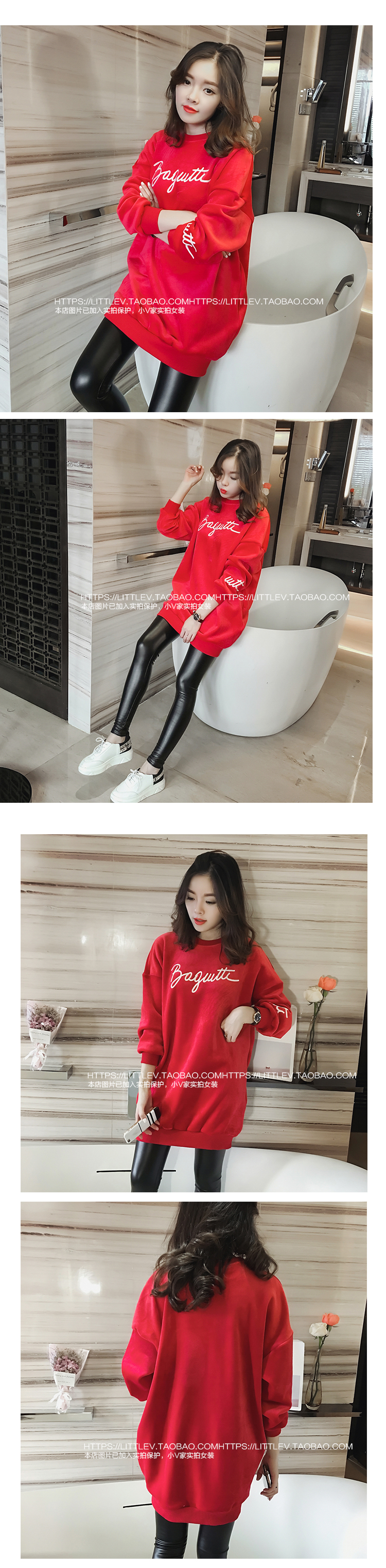 Autumn and winter new fashion casual long paragraph letter embroidery plus cashmere sweater