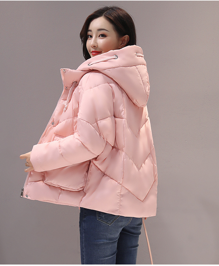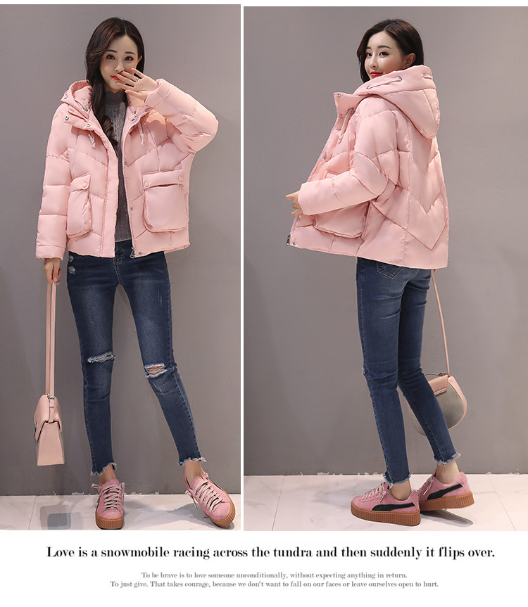 Women’s cotton short section big pockets tied necklace loose down Korean jacket