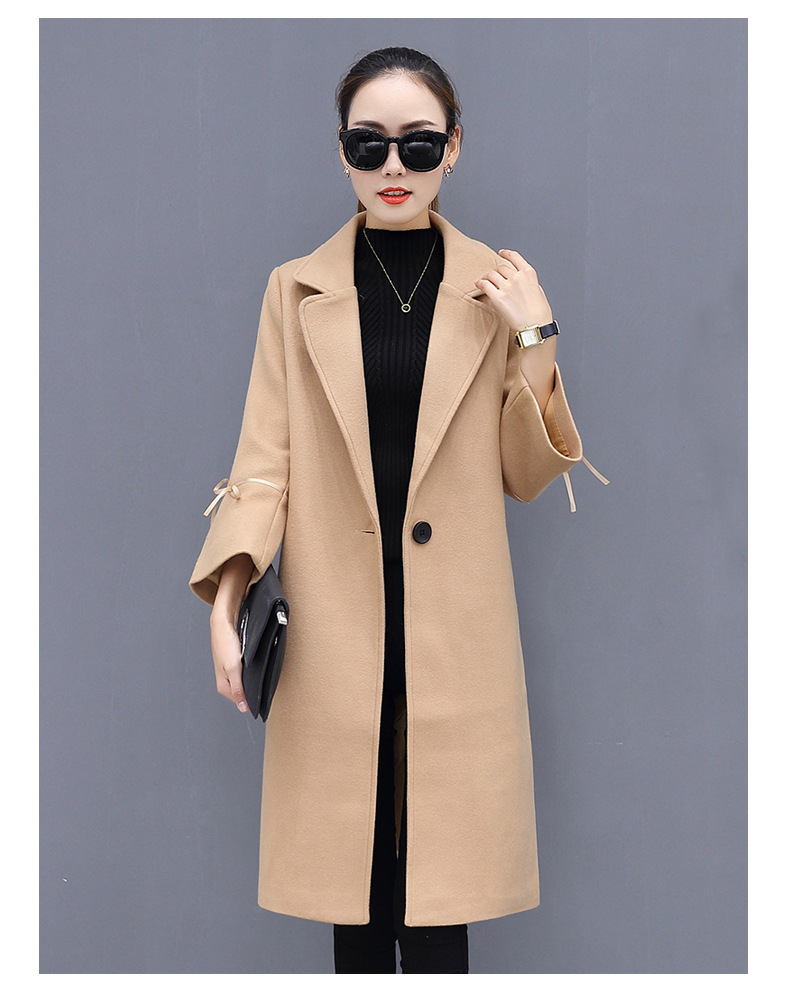 Long section of Korean version autumn and winter new sleeve temperament wool coat