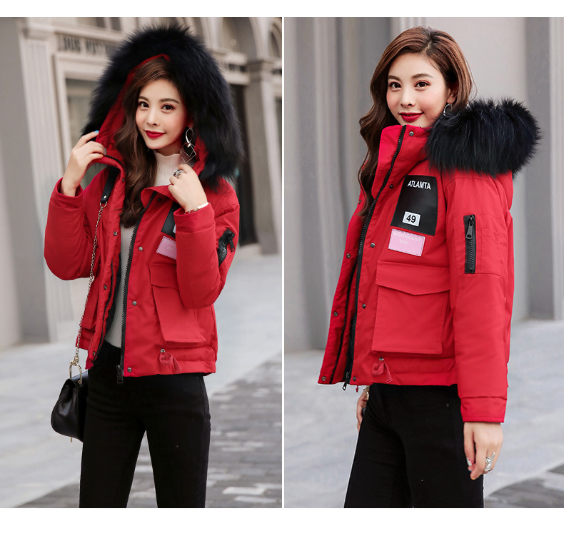Pocket splicing trend of casual fashion sweet long-sleeved cotton padded winter fur collar jacket
