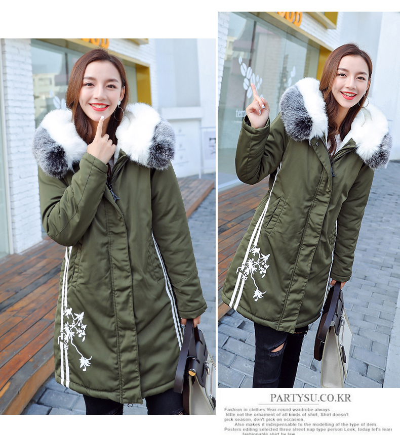 Winter new down cotton padded female long section thick fur collar hooded lamb velvet liner cotton jacket