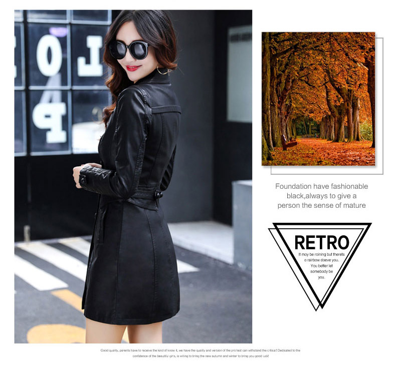 Leather long section of women autumn and winter with new Korean version of Slim pu leather coat