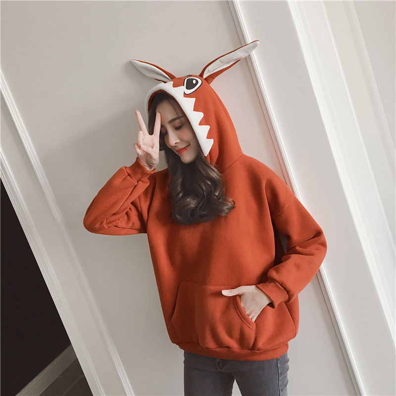 Autumn new women’s Korean hooded rabbit ears loose casual hooded sweater