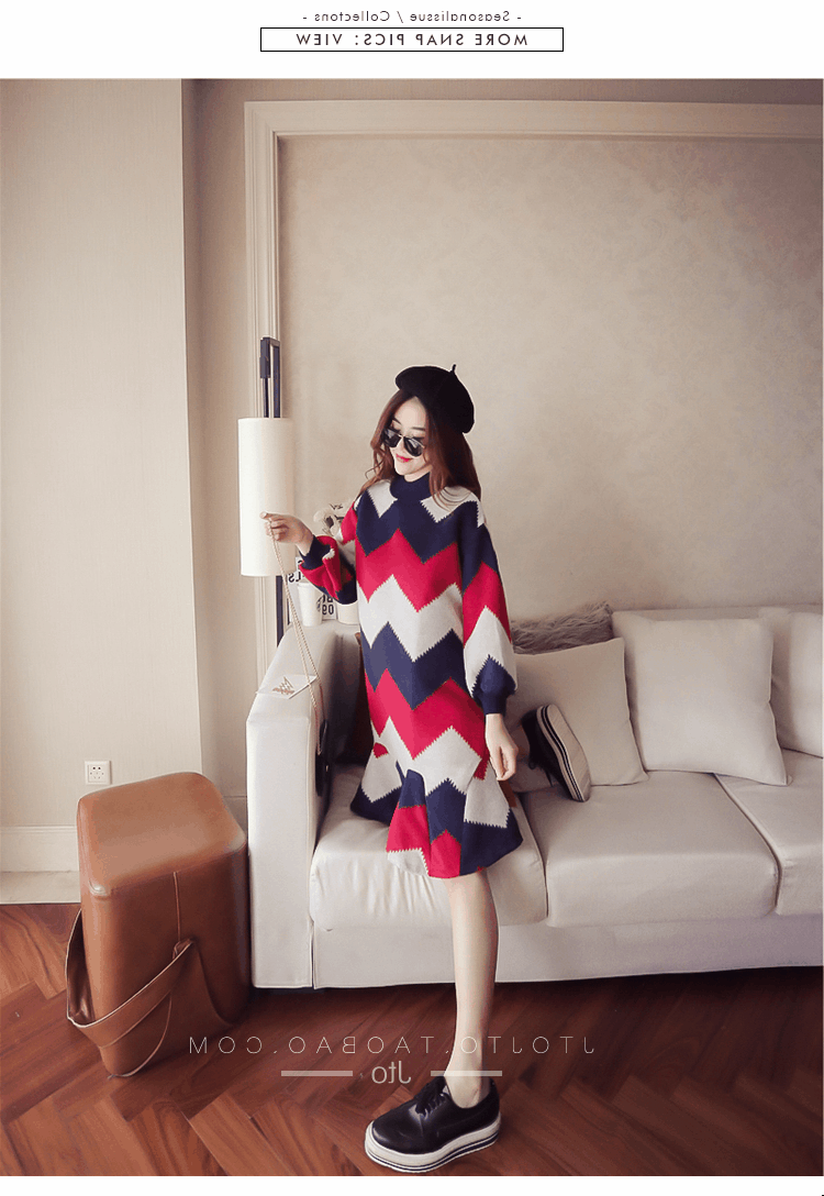 Autumn and winter new Korean long-sleeved lotus leaf woolen loose long section Puff a word doll skirt dress