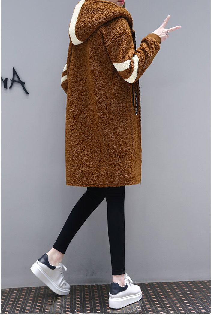 Autumn and winter lamb hair lapel long section long-sleeved student coat