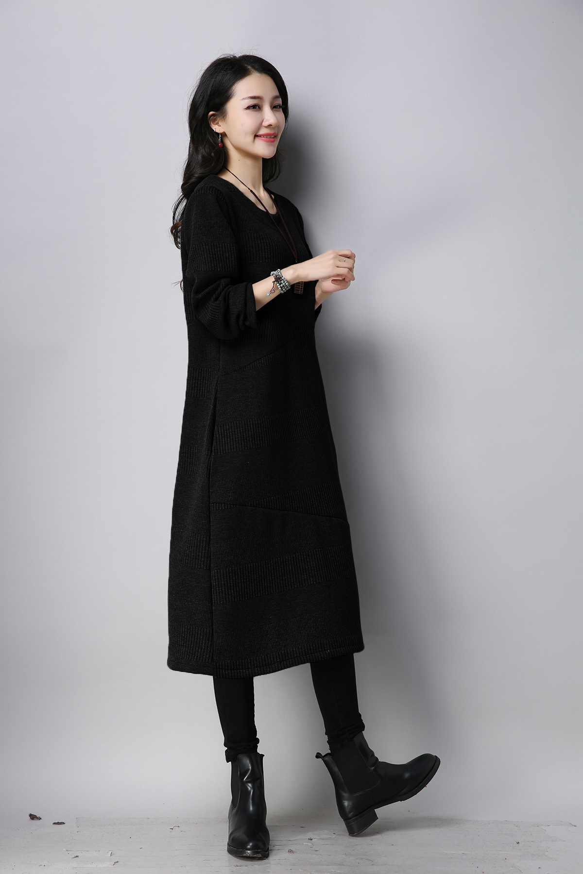 Autumn and winter large size women Slim wild long thick striped basal dress