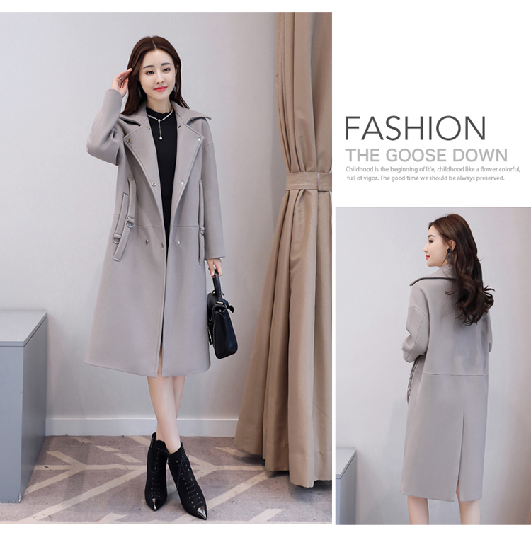 Autumn and winter new wool female long section rivet trend large size loose thin woolen jacket