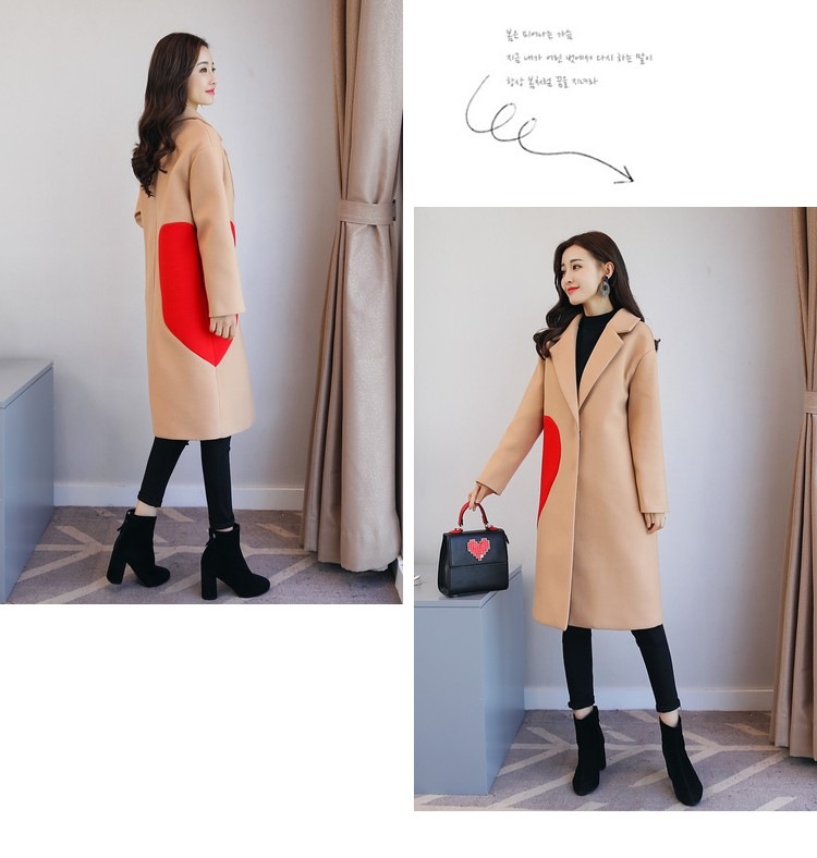 Woolen female long paragraph Korean version of new autumn-winter stitching hit knee woolen coat