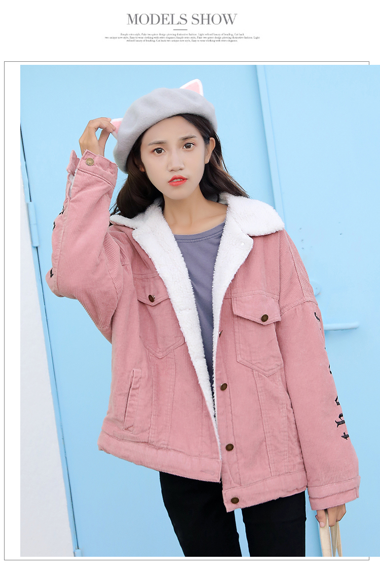 Winter new cotton retro cardigan wind lambskin denim jacket