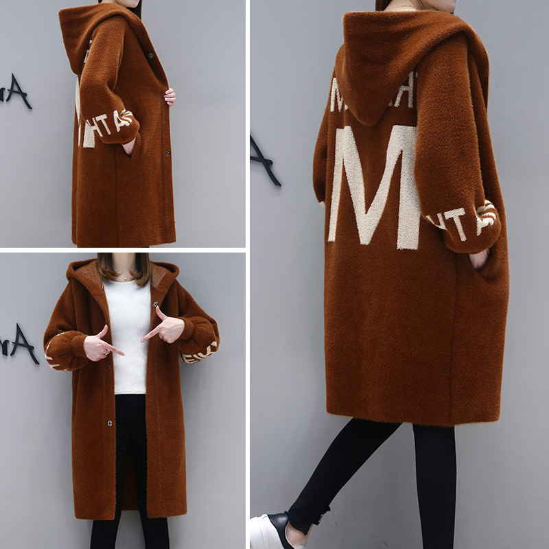 New autumn and winter women’s long section of thick hooded sweater