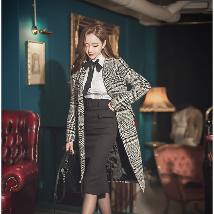 Korean fashion woolen winter new long-sleeved Slim long belt temperament wool coat