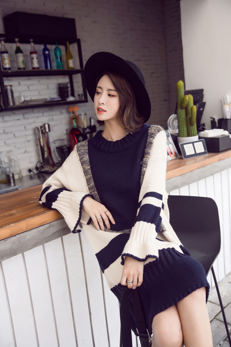 Autumn and winter new loose large size fashion sweater women Korean version of the long horn trumpet sleeves dress