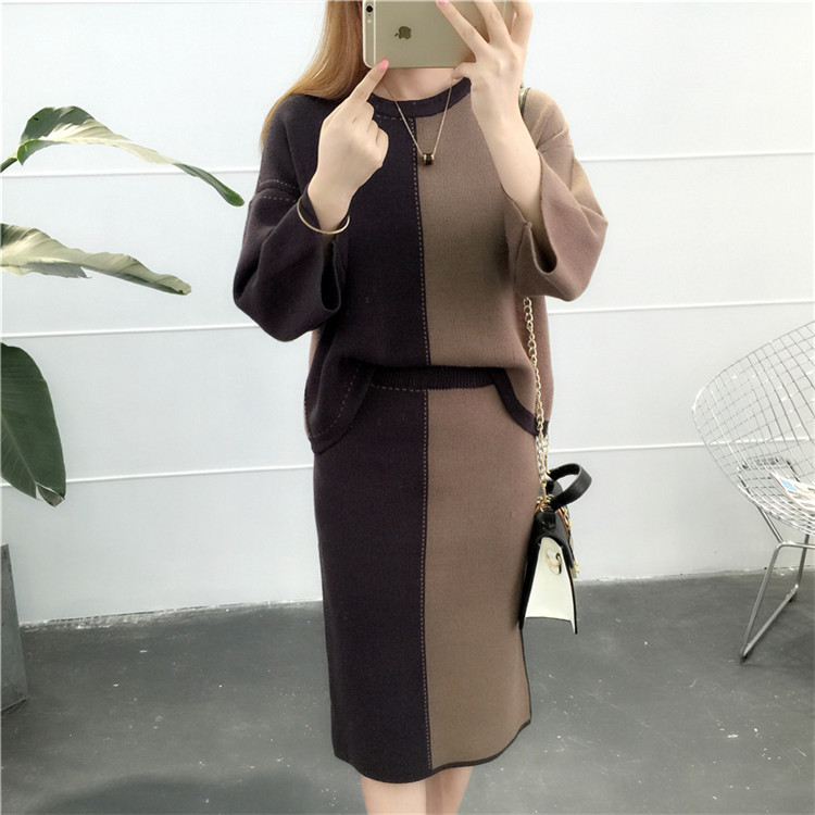 Autumn and winter new suit knit Korean version of spell color two-piece sweater