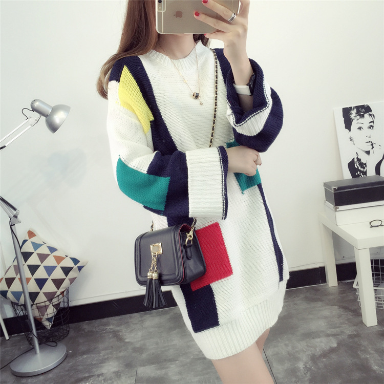 Autumn and winter new Korean hit color long women’s pullovers knit sweater