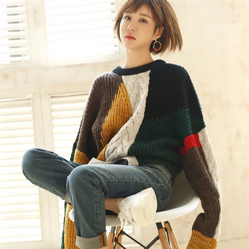 Women loose pullover round neck Korean version hit color