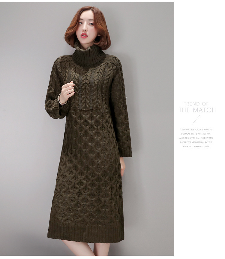 Autumn and winter Korea loose twist knit thickening long section turtleneck pullover pull wool dress