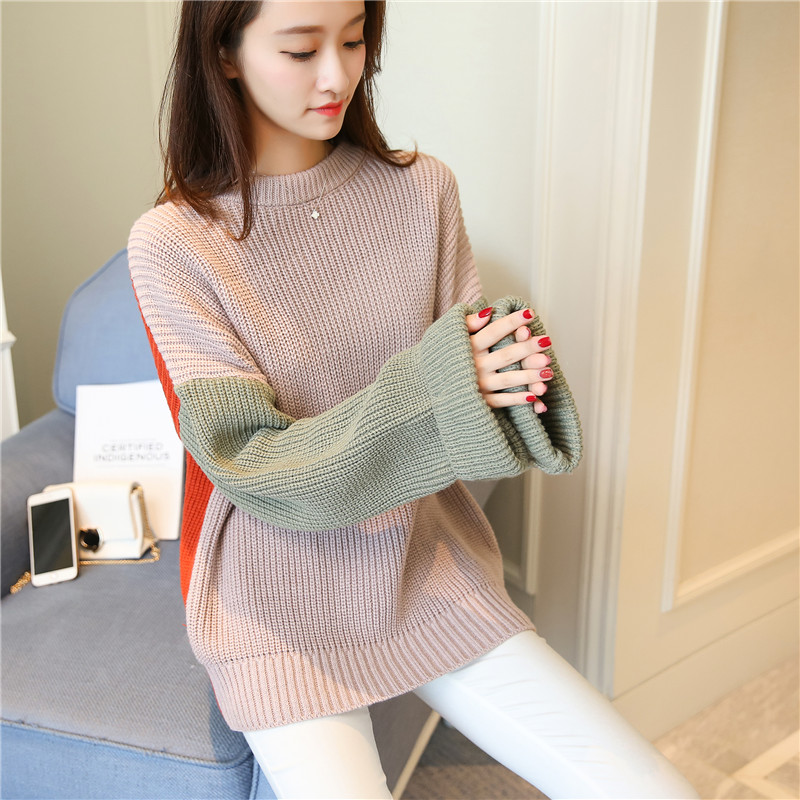 Autumn new Korean women’s round neck loose hedging large size sweater