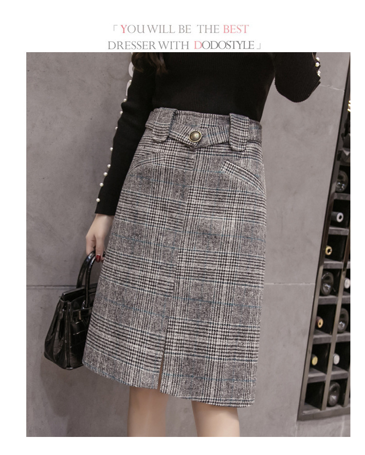 Autumn and winter new England style wild lattice fork skirts (with belt)