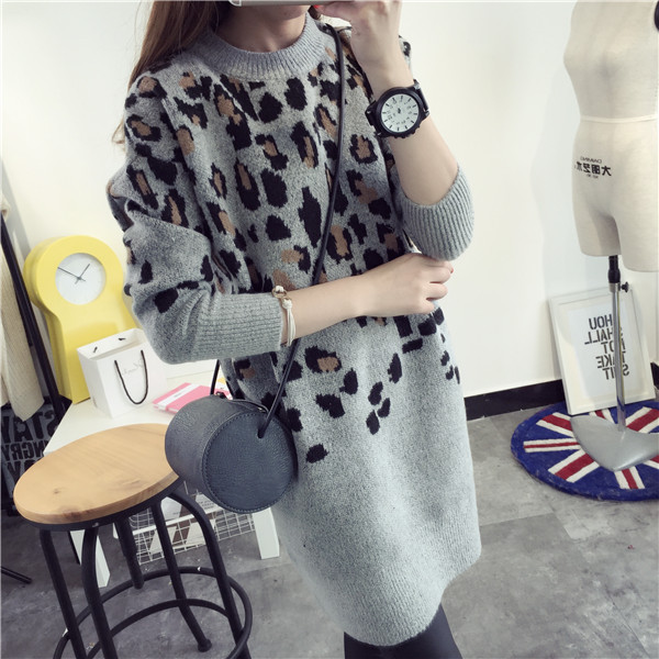 Autumn and winter new long paragraph gray pullover female fashion Leopard wild Slim sweater