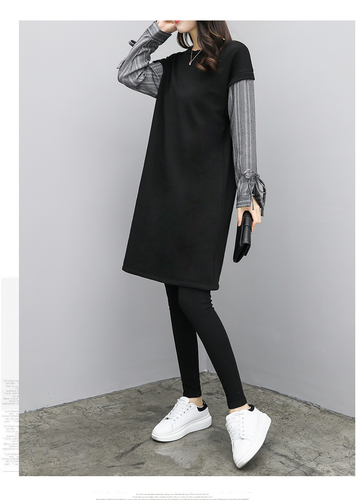 Autumn and winter new long-sleeved sweater fake 2 piece dress