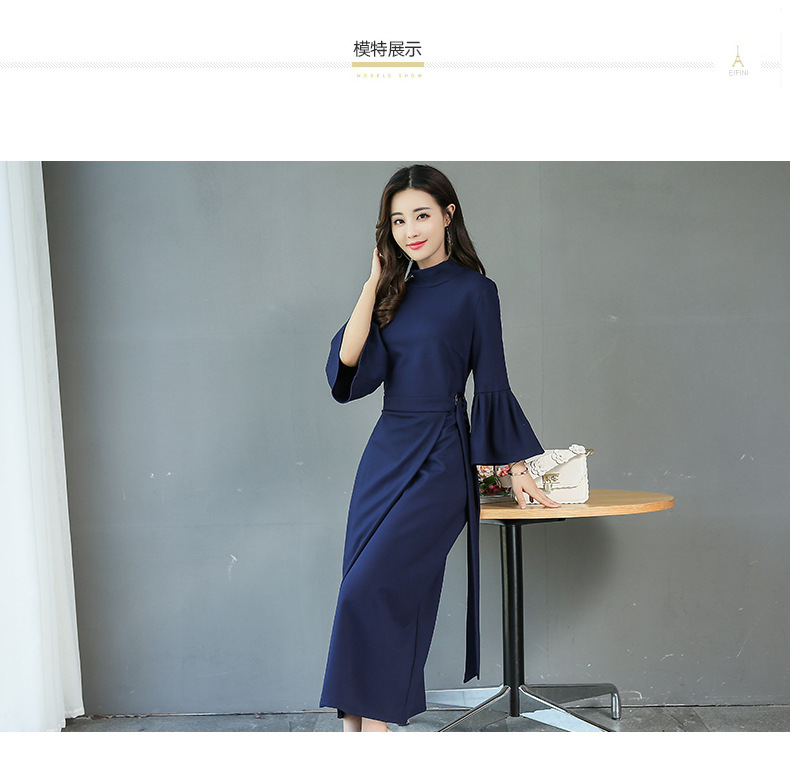 Autumn and winter new retro long Slim thin skirt dress