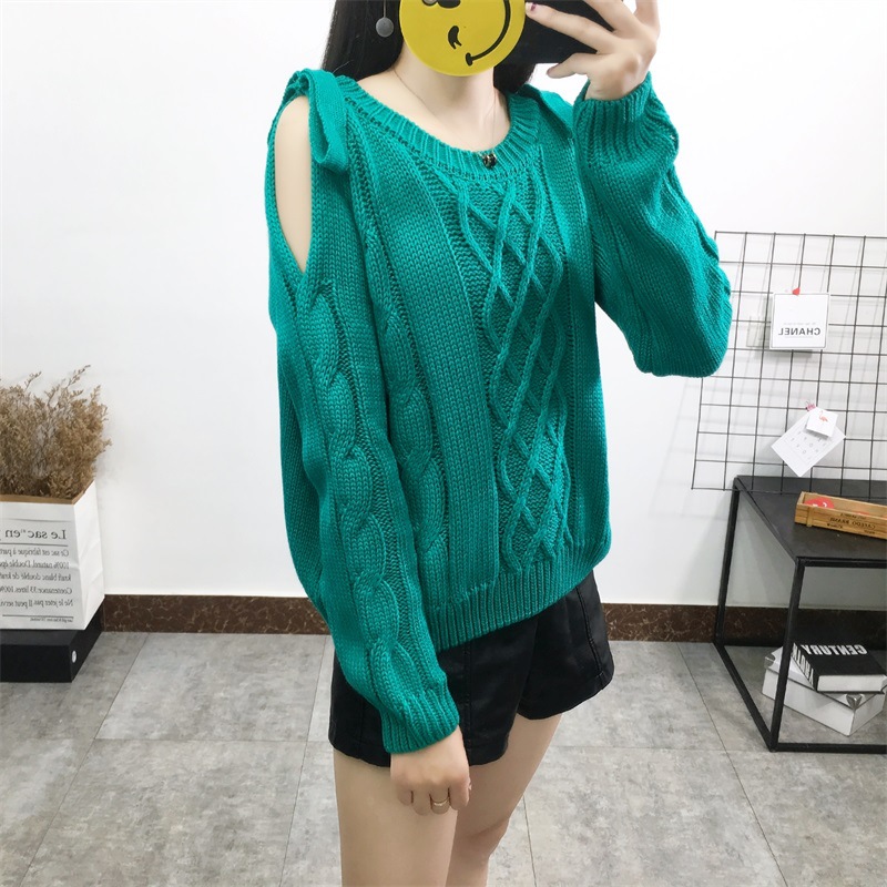 Autumn new twist loose knit women Korean bowknot short paragraph shoulder sweater