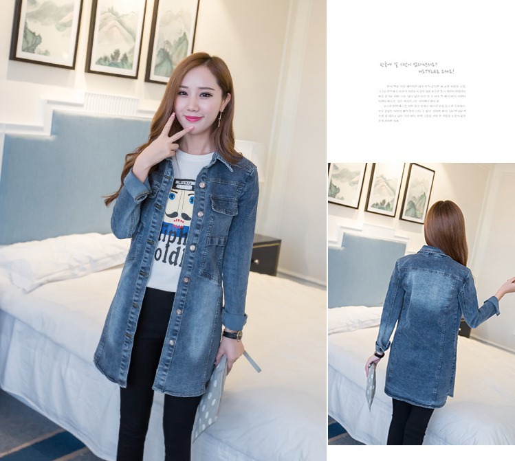 New Korean version of long denim jacket women’s jeans spring and autumn shirt