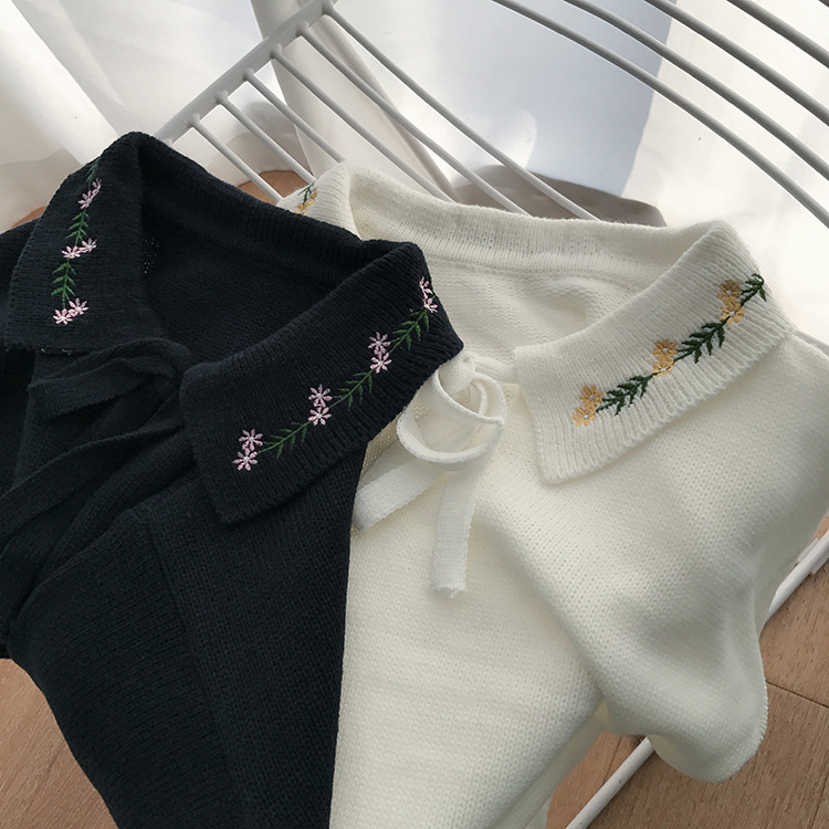 Autumn and winter new women’s embroidery flowers pink doll collar pullover sweater