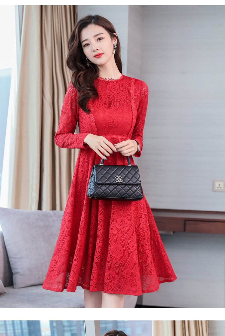 Spring new Korean temperament Slim thin long lace dress