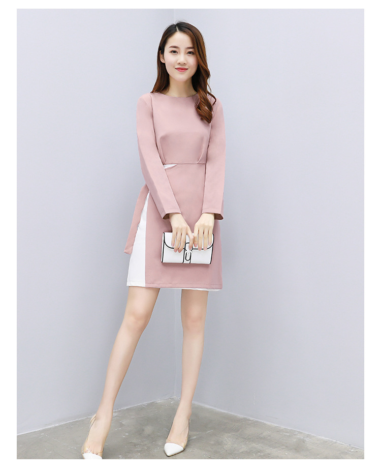 Spring and Autumn Sleeve long section fake two peice waist Slim skirt
