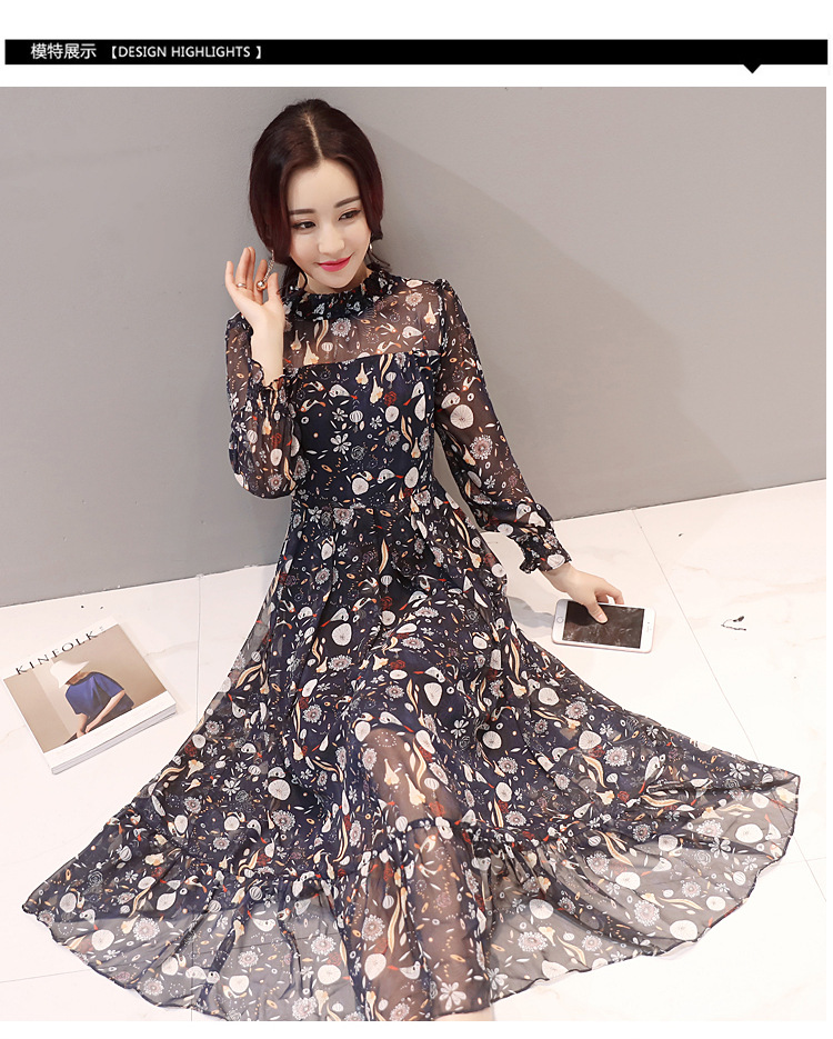 Korean version of spring new women’s longs printed skirt beach dress