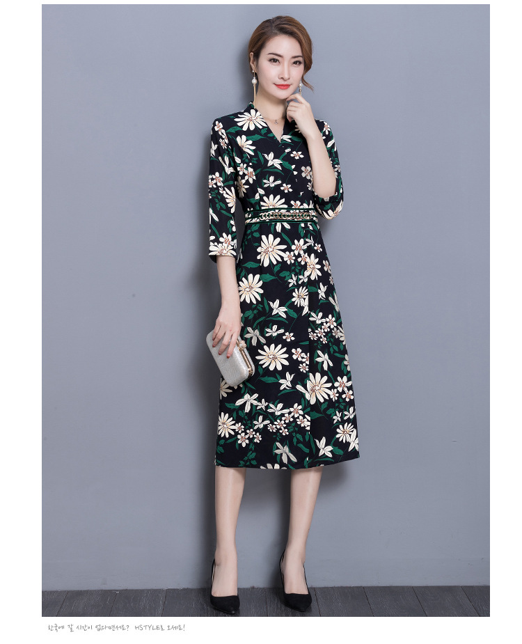 Spring new elegant color sexy V-neck sleeves printed dress