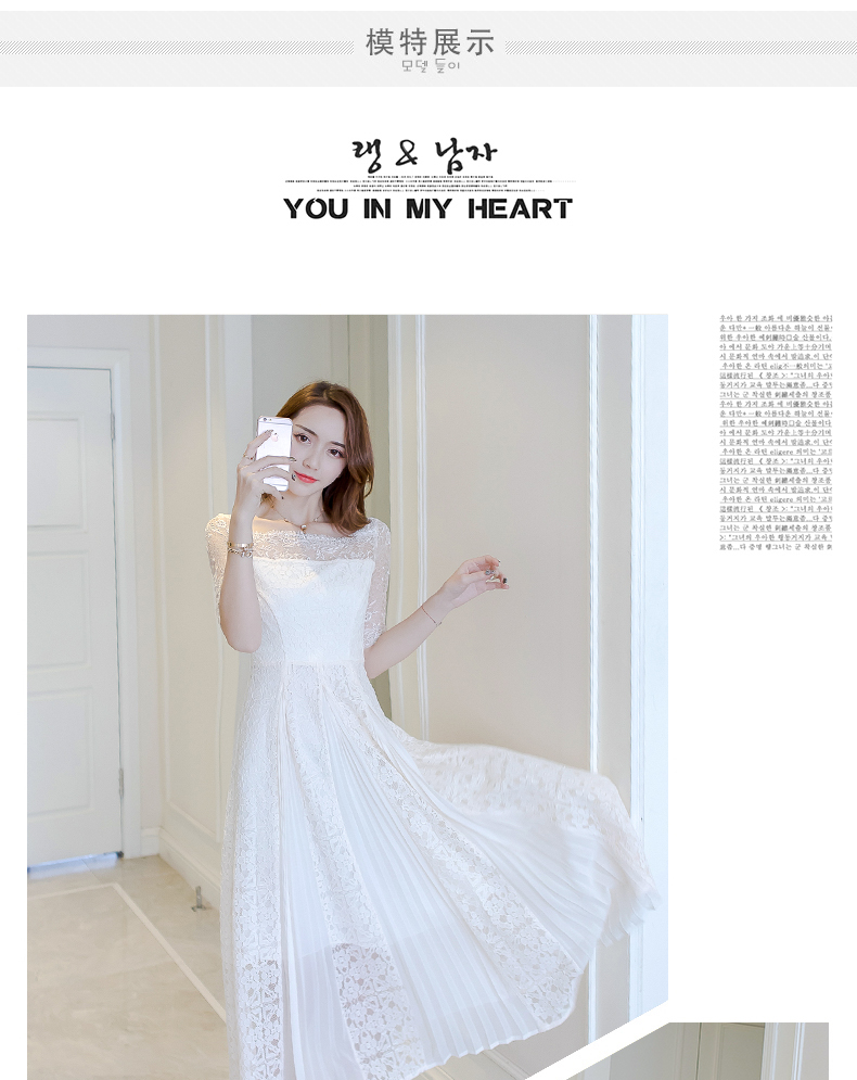 Summer new Korean version of U-lace pleated chiffon spliced five-point sleeve dress