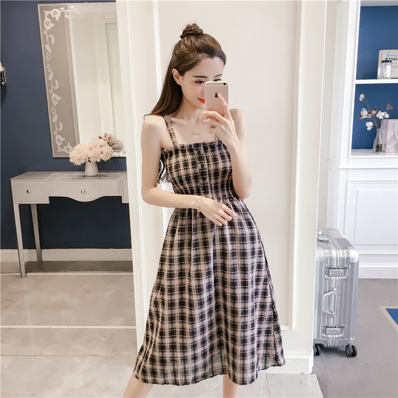 Summer new chic Korean women’s high waist thin lattice harness dress