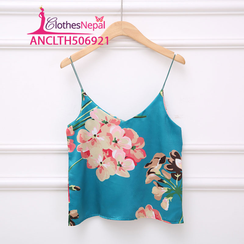 2018 summer new small fresh wild leaves printed satin camisole Slim thin outer wear women