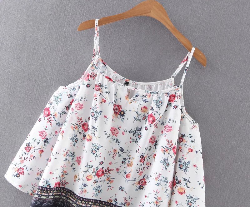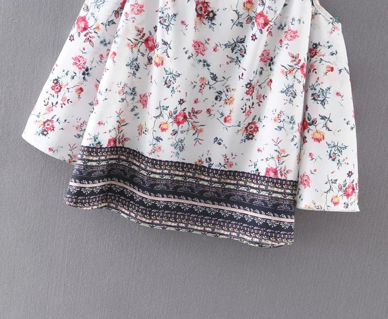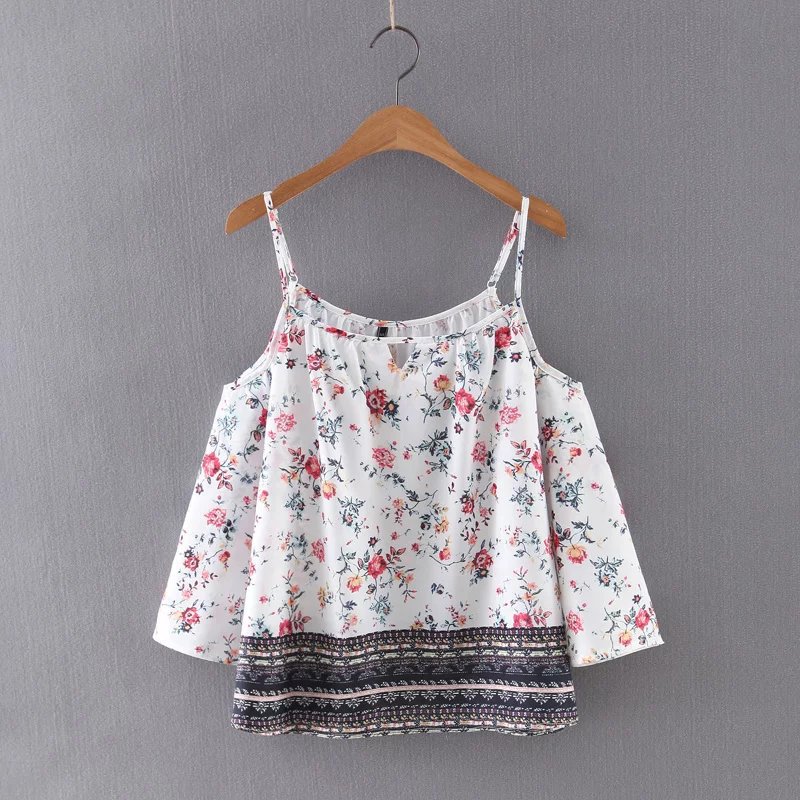 Summer new European and American style seven-point sleeve strapless printed harness shirt