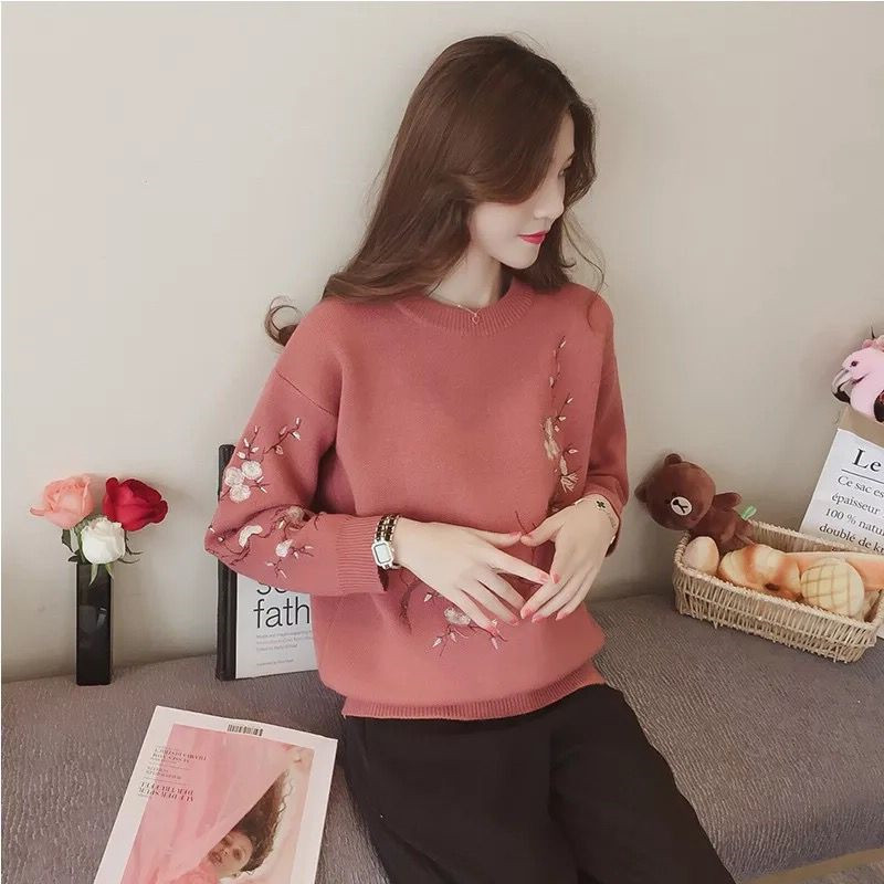 Autumn new embroidery hedge Korean version of loose short paragraph autumn and winter round neck sweater