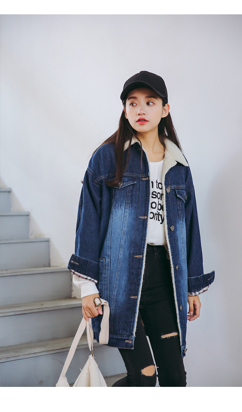 Long paragraph denim cotton autumn and winter new Korean women loose warm jacket