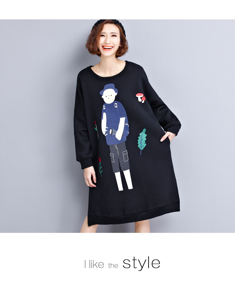 Autumn and winter new wild loose long section of large cartoon print T shirt skirt dress